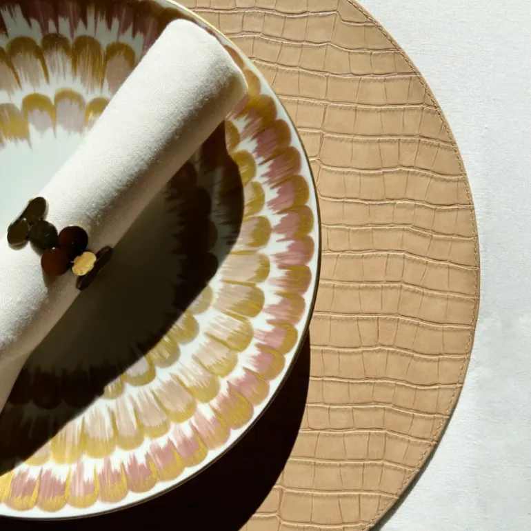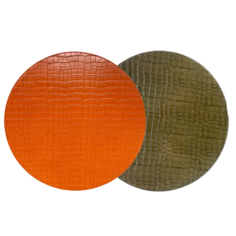 Color and texture set the tone and our embossed faux Croco Reversible Placemats let you transform the look of your table with a quick flip. One side features a bold confident hue that gives off a fresh, contemporary look. The other side offers an understated palette that sets a more sophisticated mood. The clean and chic crocodile pattern works everywhere. The textured placemat completes any soiree or complements a well-appointed table. Perfect for entertaining, these placemats are easy to care for; simply wipe them down before storing them.