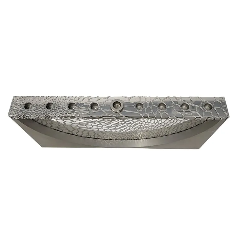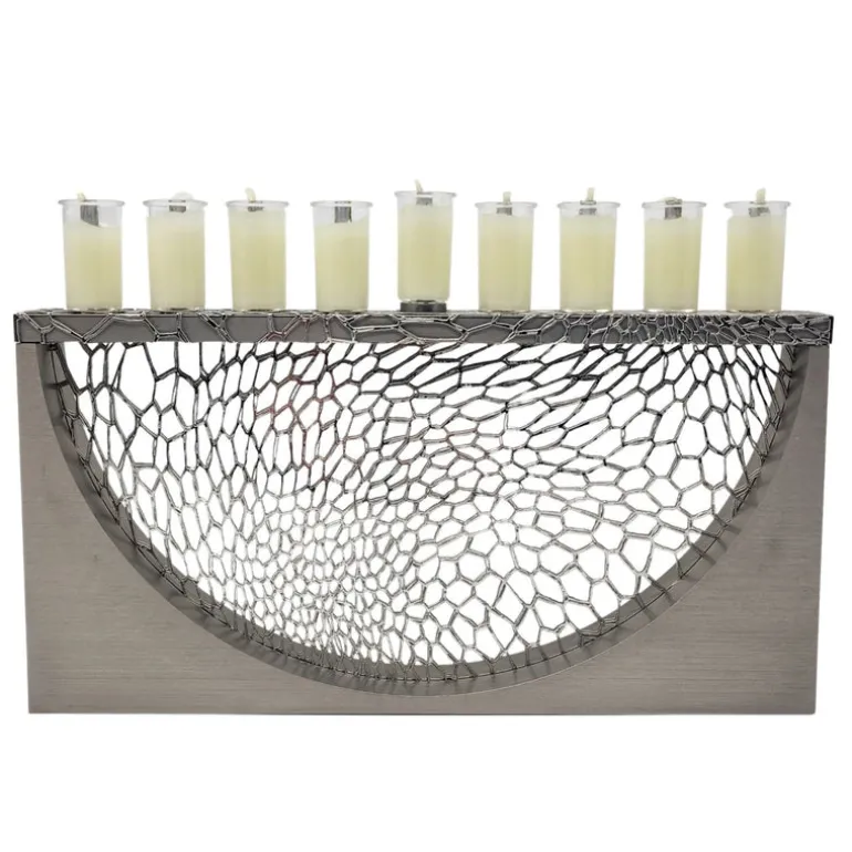 This stunning Menorah from Israel is handmade of laser-cut metal. A true work of modern art with a traditional lace-like design that marries the old and the new.