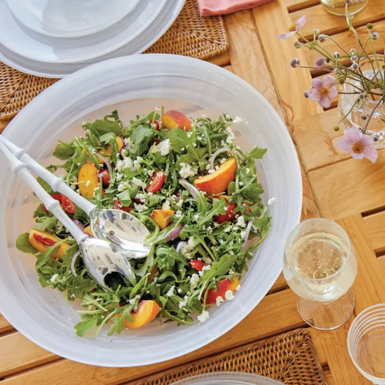 Rich in form and finish, the White Alabaster Serving Bowl is the perfect touch for entertaining. With its opulent hand cast swirls of color, the 15″ White Alabaster Serving Bowl is sure to be a head-turner at your next gathering.