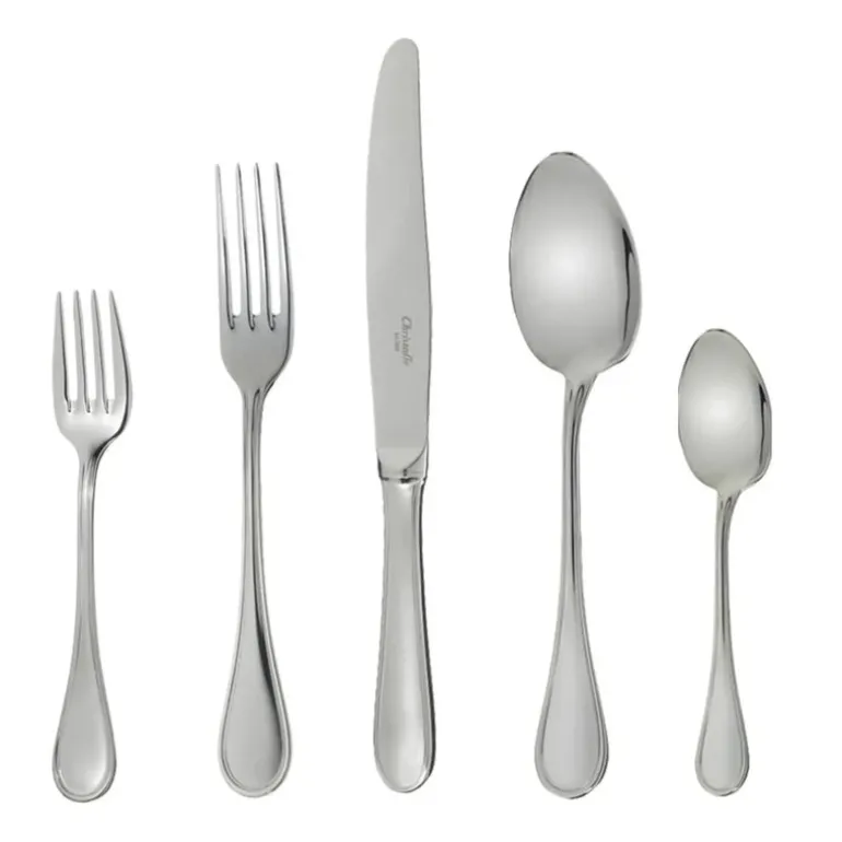 This Albi Acier Christofle Stainless Steel Flatware 5 Piece Setting is the perfect addition to your dinner table. This high-quality flatware set is made with stainless steel and is dishwasher safe for easy maintenance. Enjoy this durable and long-lasting set for many meals to come.