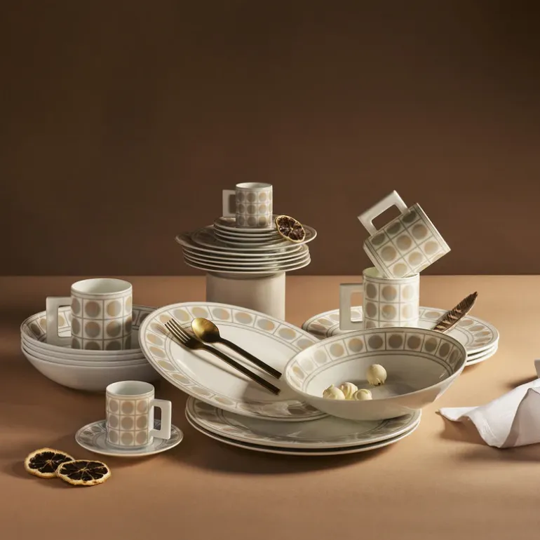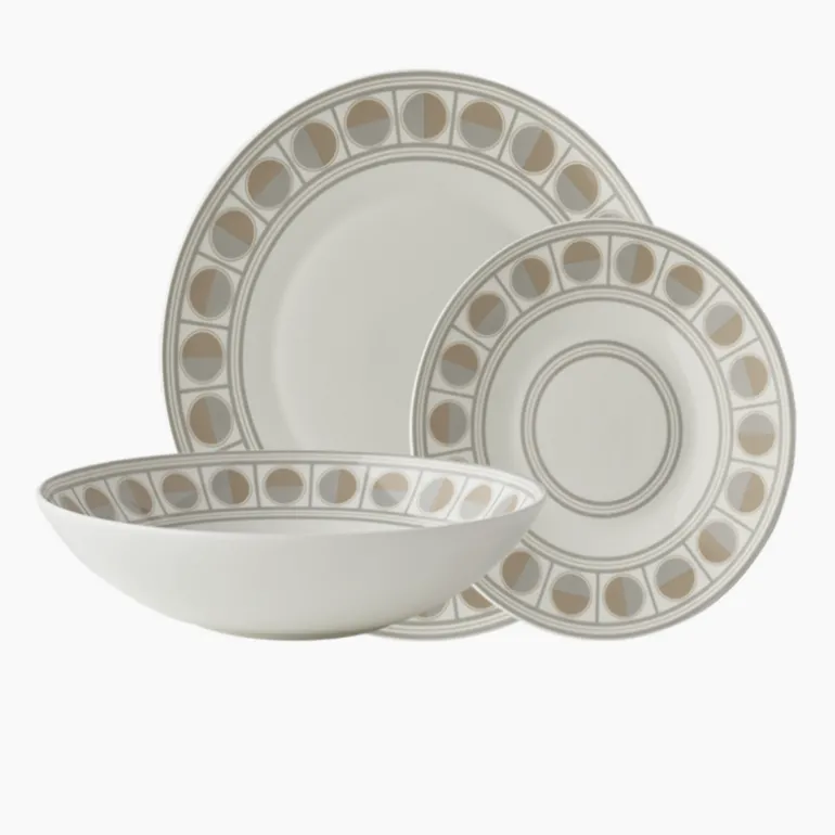 Featuring a peach, grey, and white Sorrento-inspired design, this plate combines iconic architectural motifs with a modern silhouette for a striking addition to any contemporary table setting. From award-winning Australian designer Greg Natale, known for his expert use of color and pattern, comes a handcrafted collection of luxurious accessories that bring boldness and visual intrigue to any space.
