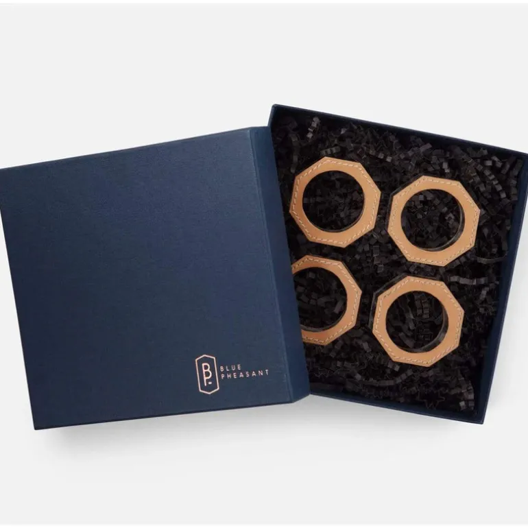 Sleek and sophisticated, these crystal napkin rings have a full-grain leather edge detail. They can be dressed up or used casually. Variation is to be expected.