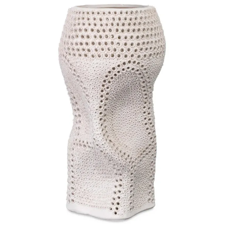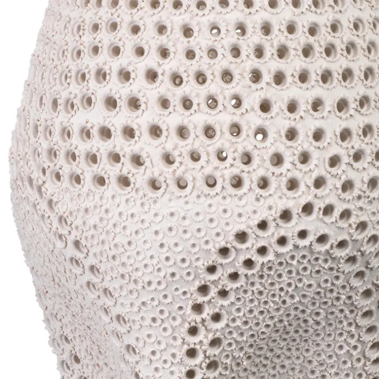 The Astral vases have a sublimely perforated pattern and organic shape with a matte finish. The vases are for decorative use only and do not hold water. Each is created by hand and will vary slightly, ensuring each is an individual work of art. Pair with the Barrier or Wharf Vases.