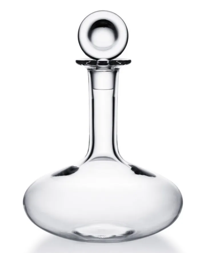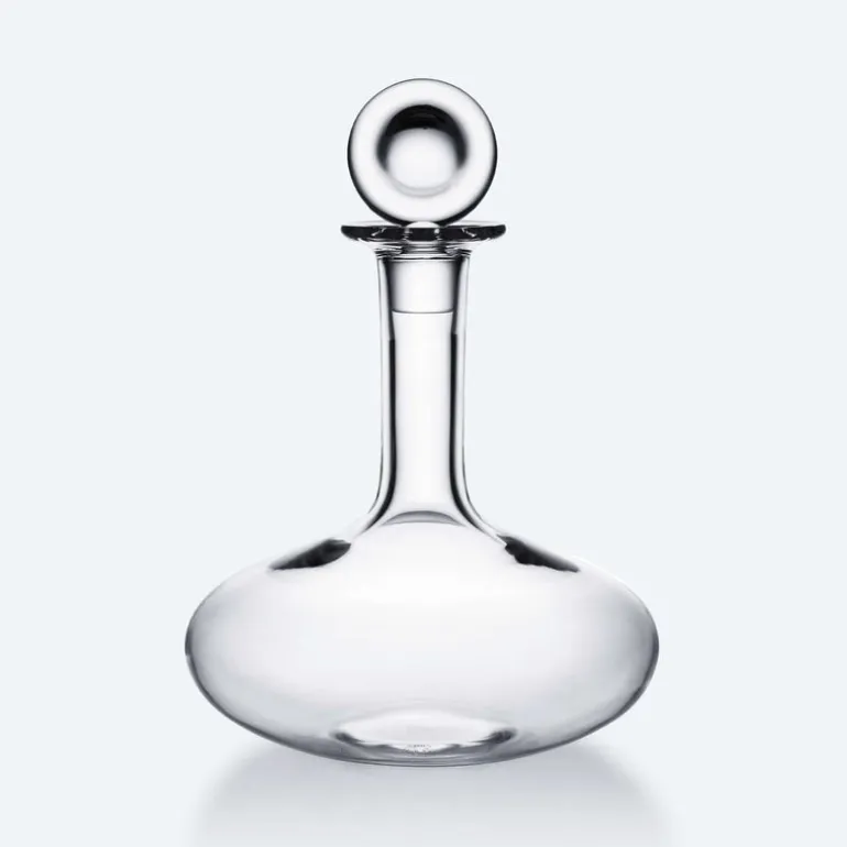 Decanting a young wine allows its aromas to develop and be savored later: airing it out releases its full flavor. Decanting may also be a fitting option for older wine that has yet to reach complete maturity. The Baccarat Clear crystal Oenologie Decanter is not only a vehicle that helps the wine achieve its full integrity; it is also a stunningly crafted piece. Its build echoes that of a laboratory volumetric flask, but its functional form is elevated thanks to the exquisite Baccarat Clear crystal and its exceptional design flourishes. The poise of the slender neck morphs gracefully into the elliptically-shaped base. The stopper crowns the silhouette with a perfectly rounded loop of Baccarat Clear crystal.