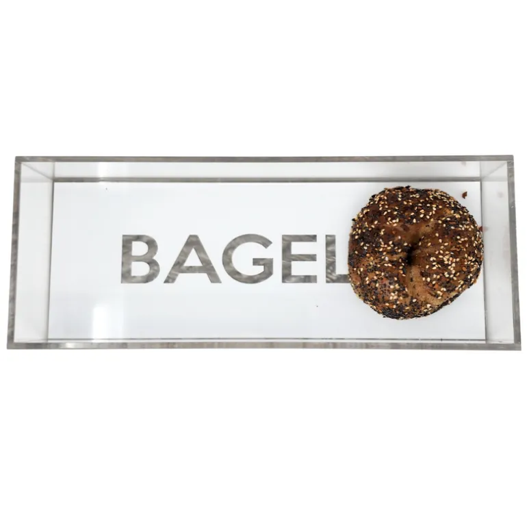 This fun acrylic bagel tray is ready to help you break the fast at the holiday or serve breakfast at any time.