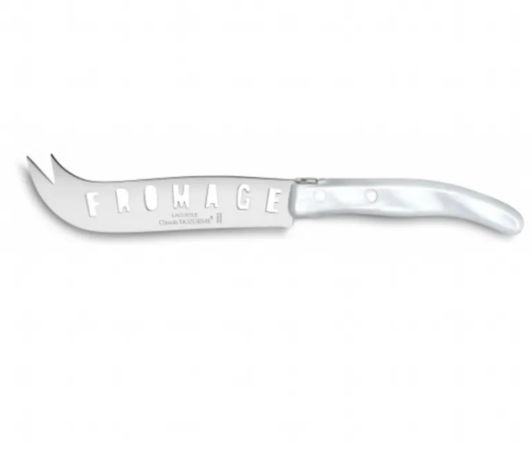 This French-made cheese Knife is handcrafted. and designed in the workshop of Master Craftsman and Cutler Claude Dozorme. With a spike edge and the word FROMAGE on the blade for a fun addition to your cheese board. You can add our other cheese sets that match.