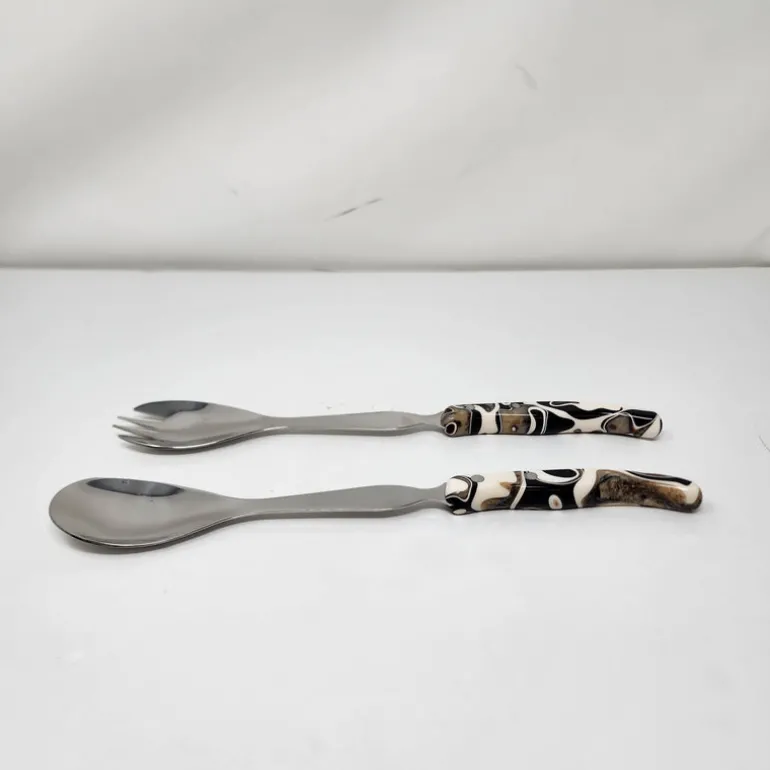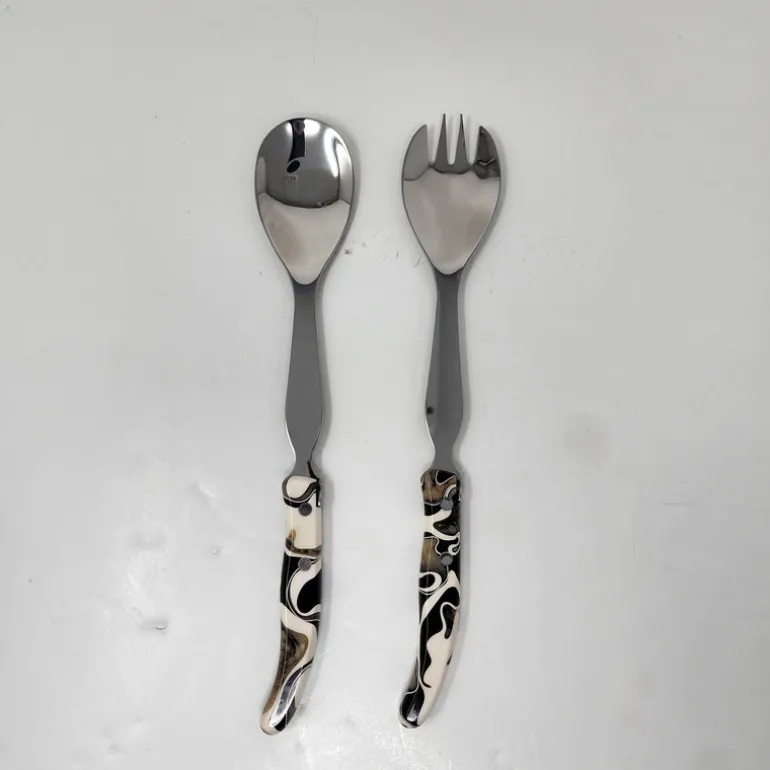 Equipped with methacrylate handles, this salad serving set with an attractive marble design .
