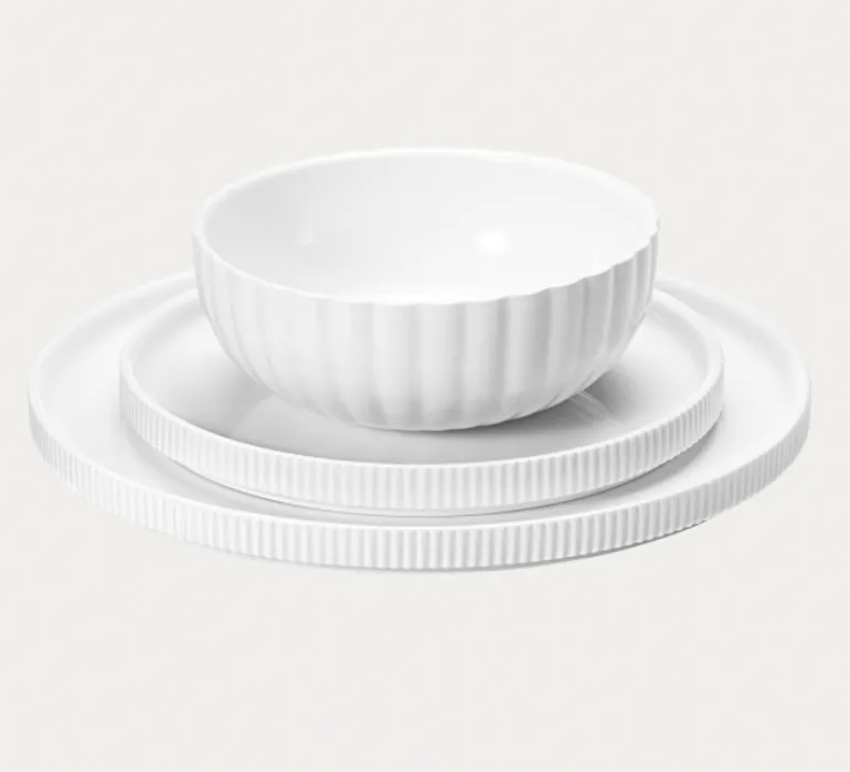 The Bernadotte Dinnerware by Georg Jensen is minimalist yet still has subtle detailing. The small ridges add a tactile element that references Bernadotte’s functionalist Art Deco aesthetic whilst the flat shape of the plate is entirely contemporary. Mixed with the larger plates and bowls from the range, it adds a touch of sophisticated Scandinavian style to the dining experience.
