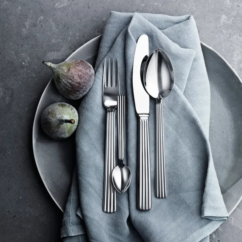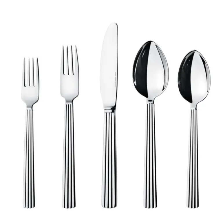 With its classic good looks and distinctive deep grooved decoration, the Bernadotte collection of cutlery has stood the test of time and remains the epitome of sophistication. Originally designed in 1936, this stainless steel five piece set brings a sense of elegance to any mealtime.