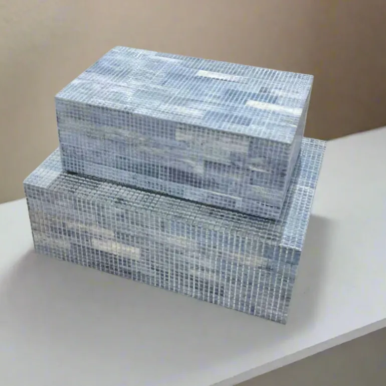 Expertly crafted with a captivating crosshatch pattern, these handmade Blue Cuboid Boxes are the perfect addition to any home decor. The soothing shades of blue add a touch of tranquility to your space, making them perfect for storing cherished items or as decorative pieces.