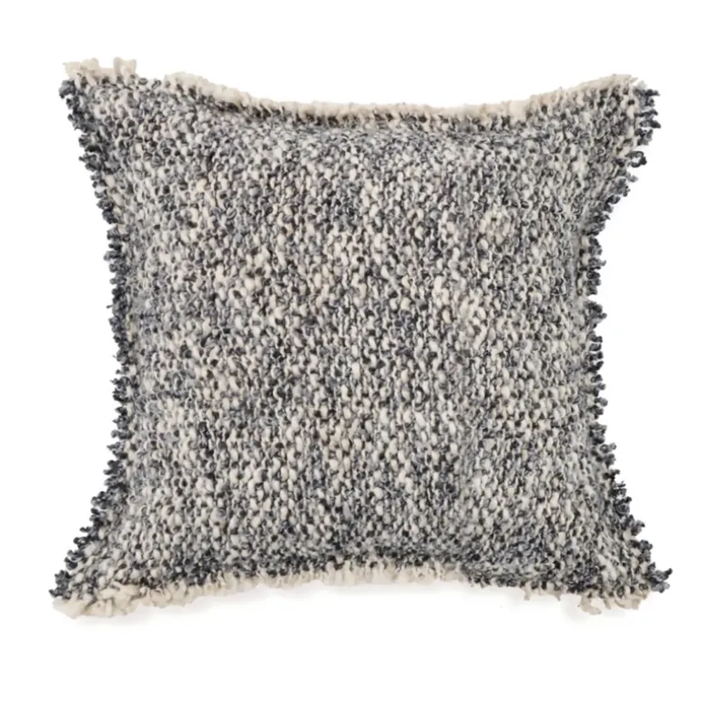Indulge in the ultimate comfort and style with our Brentwood Pillow in Steel Blue. Handloomed with contrasting yarns, it boasts a heathered look and chunky bouclé texture. Perfect for snuggling on the couch or adding texture to your bed. Made with a luxurious blend of polyester, cotton, viscose, and linen.
