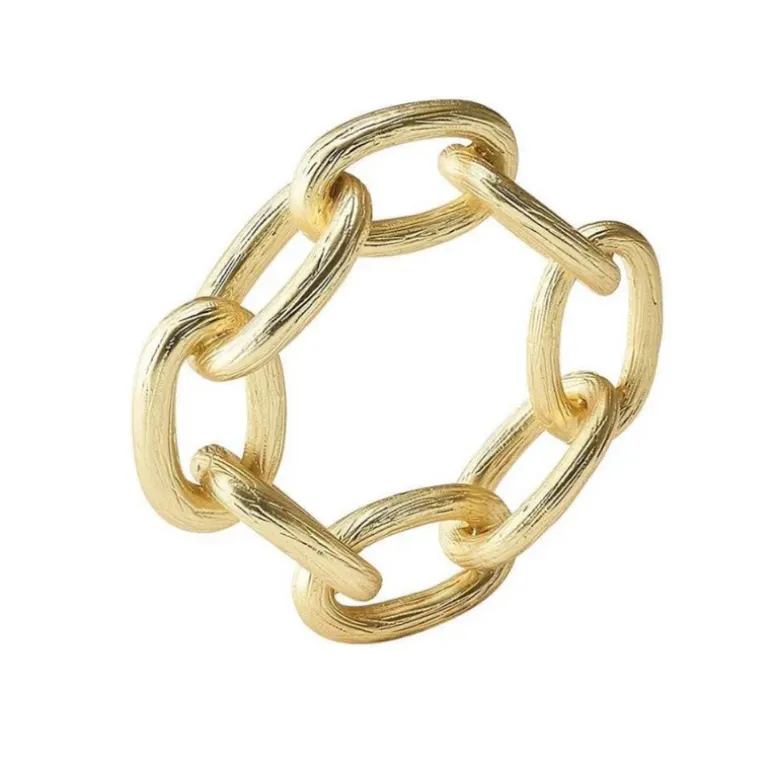 Inspired by timeless, chain-link jewelry, the Chain Link Napkin Ring will dress up any table. The gold napkin ring features classic oblong-shaped interlocking rings, the perfect statement piece.