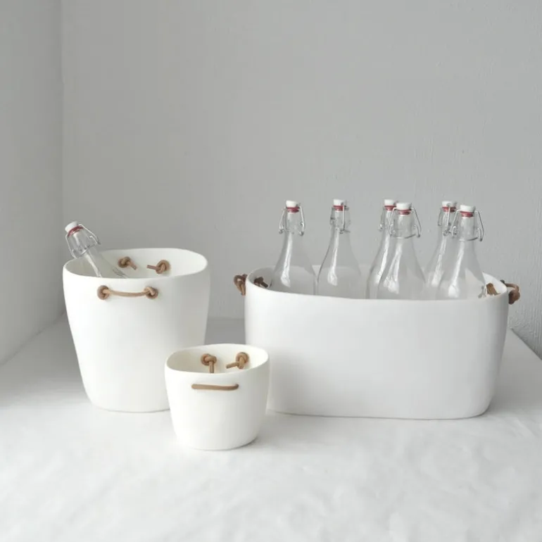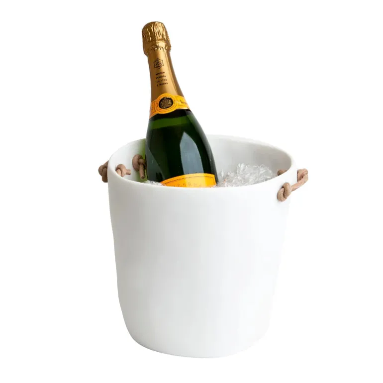 Host a stylish party with this Champagne Bucket with Leather Handles from Tina Frey Designs. A beautiful piece handsculpted from resin.