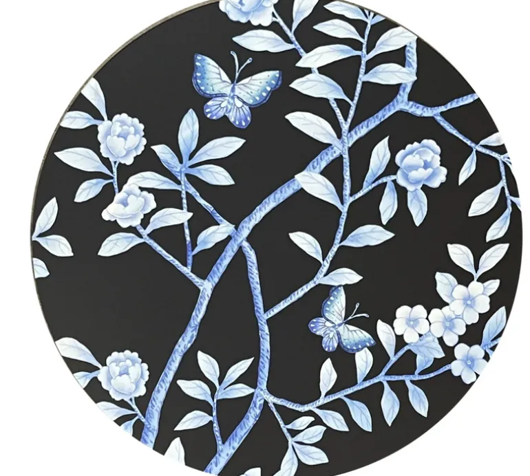 Elevate your space with these super chic Chinoiserie design placemats from Tisch NY. The design is printed on a wooden placemat with a cork back to protect your table. Easy to clean, a simple wipe down with a damp cloth.