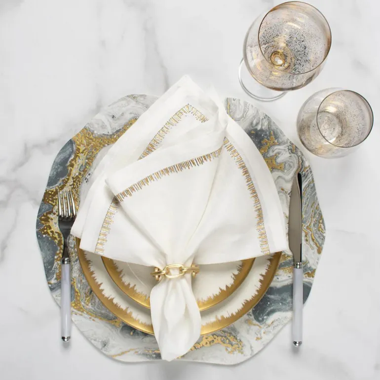 The celestial inspired round Cosmos Placemat is the perfect contemporary placemat for any kind of entertaining. Intricate marbling in bursts of ivory, gold and silver creates a heavenly effect. These easy to clean round placemats are finished with a lacquer coating, protecting the intricate marble design and adding a beautiful sheen.