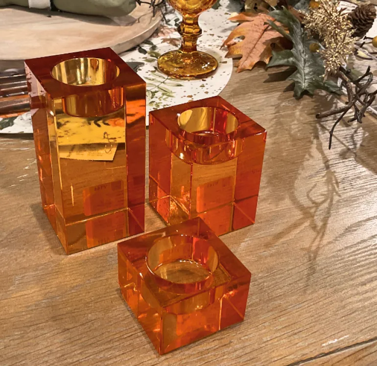 Add a touch of elegance to your dinner table with our Amber Crystal Votive Holders. The warm hues of these votives will add a shimmering glow to your meals, perfect for the autumn season and Thanksgiving. Create a luxurious and cozy ambiance with these stunning pieces.