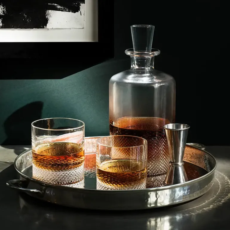 The perfectly clean-cut and striking diamond pattern covers the lower third of each piece and then floods over the base, bringing an element of tactility to the collection and making these glasses and decanters the perfect accompaniment to all cocktail and fine spirit drinking occasions.