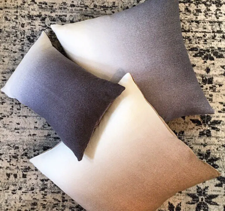 These Dip-Dyed Pillows feature luxuriously soft 100% premium baby alpaca with a sophisticated ombré design. It is as much fun to feel as it is to look at, and with a delicious velvet back you can use it on either side to suit your mood.