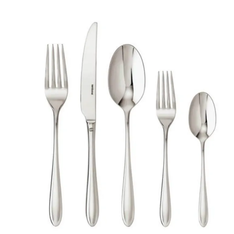 This marvelous Sambonet flatware is called Dream. It is produced using the finest stainless steel creating a style that is best described as modern and design oriented. The most prominent color of this item is polished steel colored. The 5 pcs place setting (solid handle knife) is sold as a set of 5. Please read the product description for further information regarding the contents of the set.