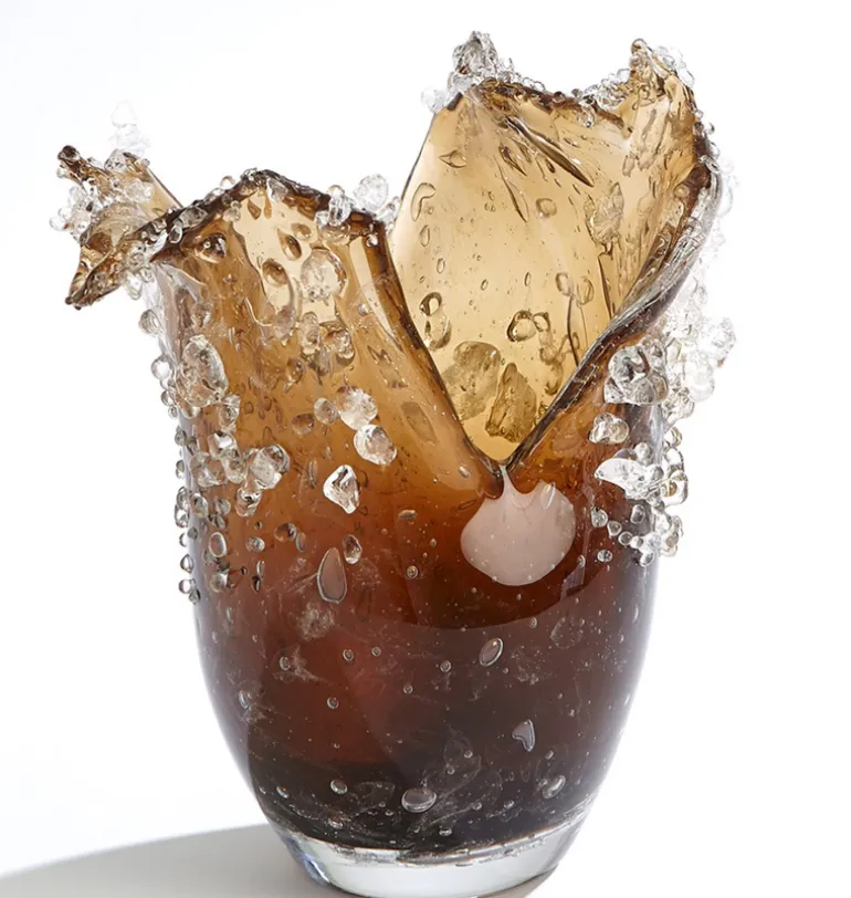 Meticulously crafted Polish handblown art glass exhibits a forceful display of power and movement. Each vase is unique and is watertight to display blooms or stand alone as an art piece in your home