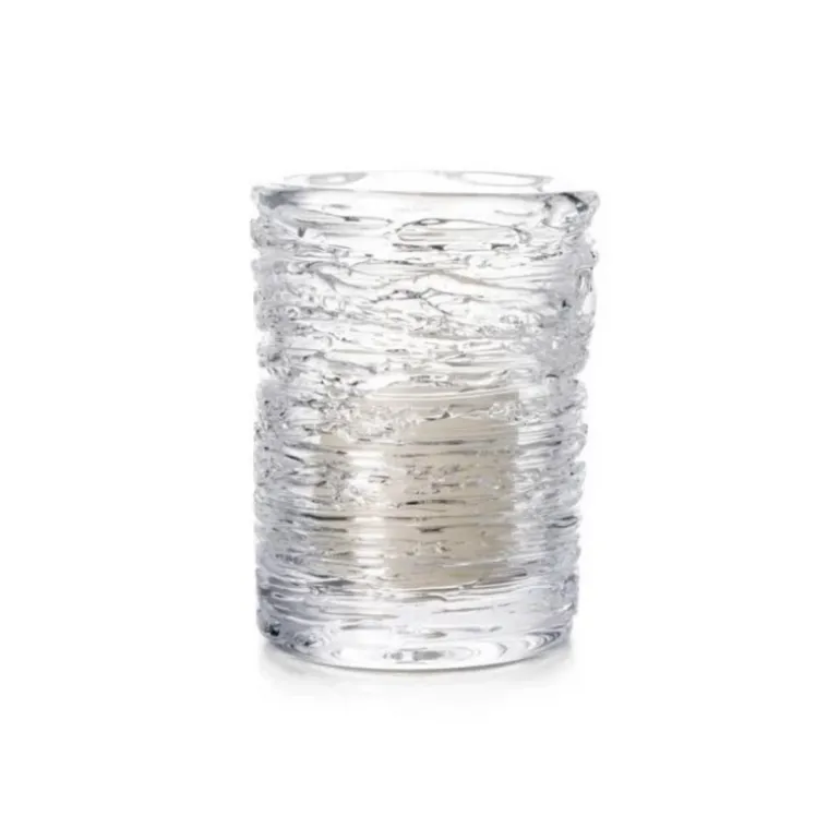 In a bold interpretation of the craft, master glassblowers nimbly wrap fine strands of glass around a cylindrical base to form the unique, natural silhouette of each candle holder. Whether frozen in winter, or flowing in summer – this piece was inspired by the constantly changing rivers, streams and waterways in Vermont.