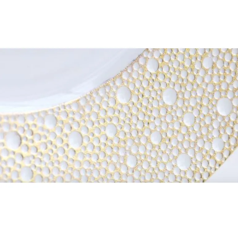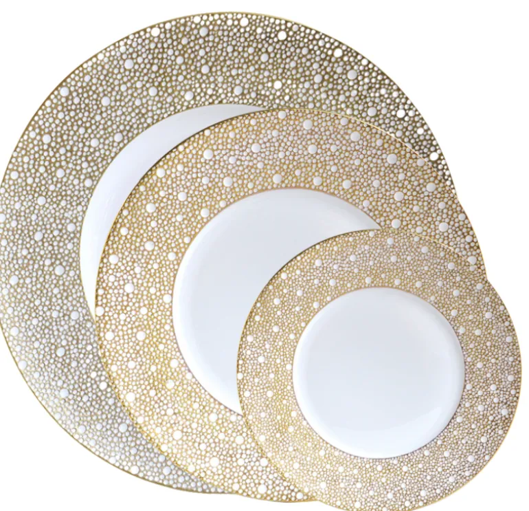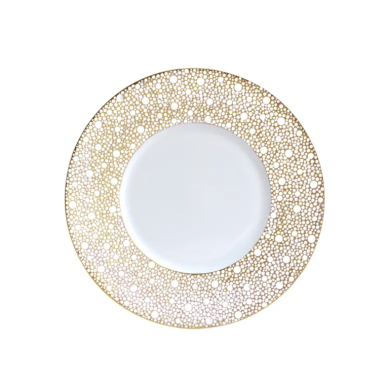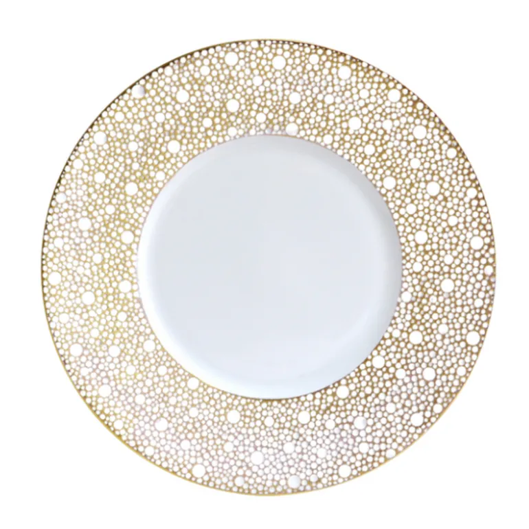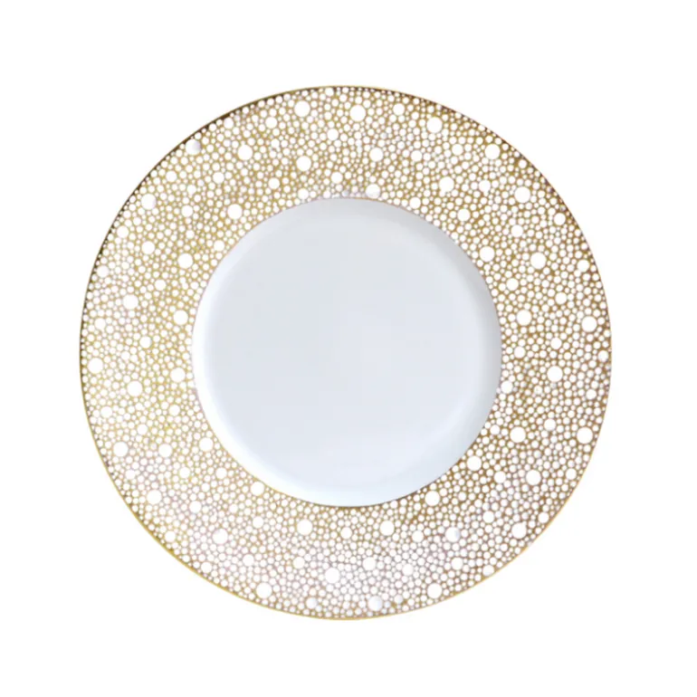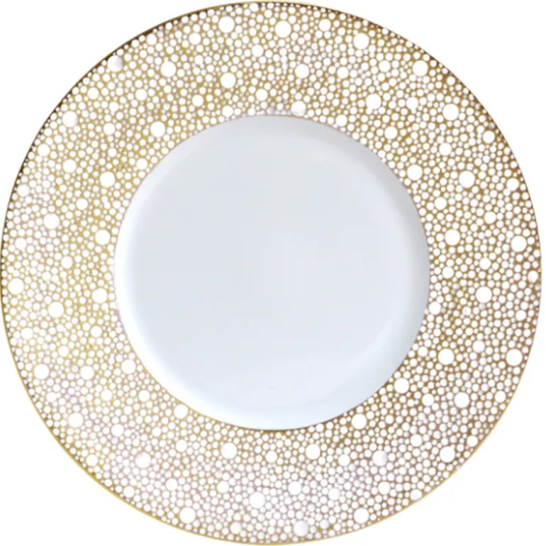 This is the latest addition to the Ecume collection, which recreates the look of foam through subtle textural contrasts and skilled glazing work. The plate rim is decorated in gold with hollows engraved in white, producing a poetic, contemporary effect. The Ecume mordoré collection will give your dinner table an aura of modern elegance. Pairs effortlessly with the Ecume White Collection.