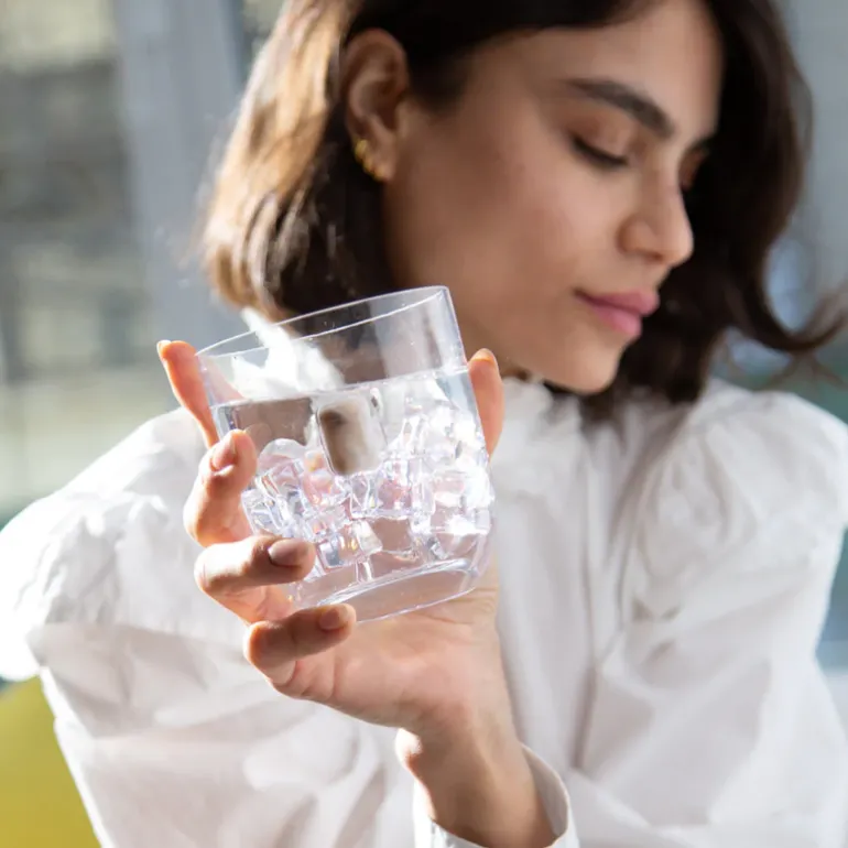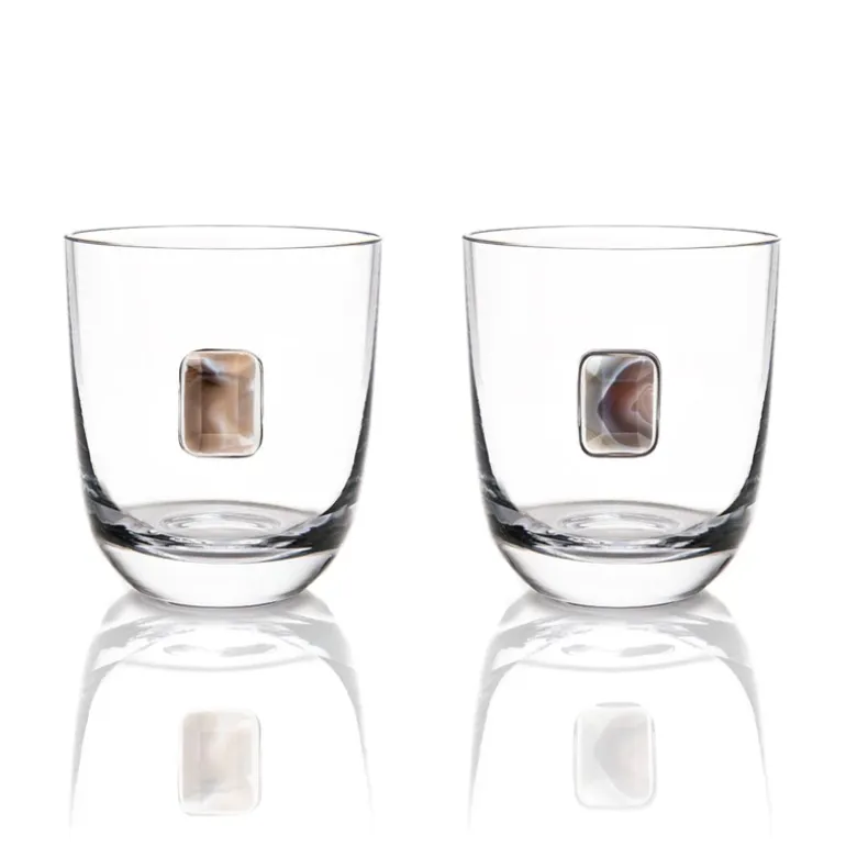 The Elevo Gemstone Double Old Fashioned Glasses are designed to elevate the experience of your favorite drink. Expertly crafted from lead-free European crystal, they are set with princess-cut, semi-precious gemstones, thought to promote clarity and strength. These pieces are jewels for your bar that make everything you imbibe taste better.
