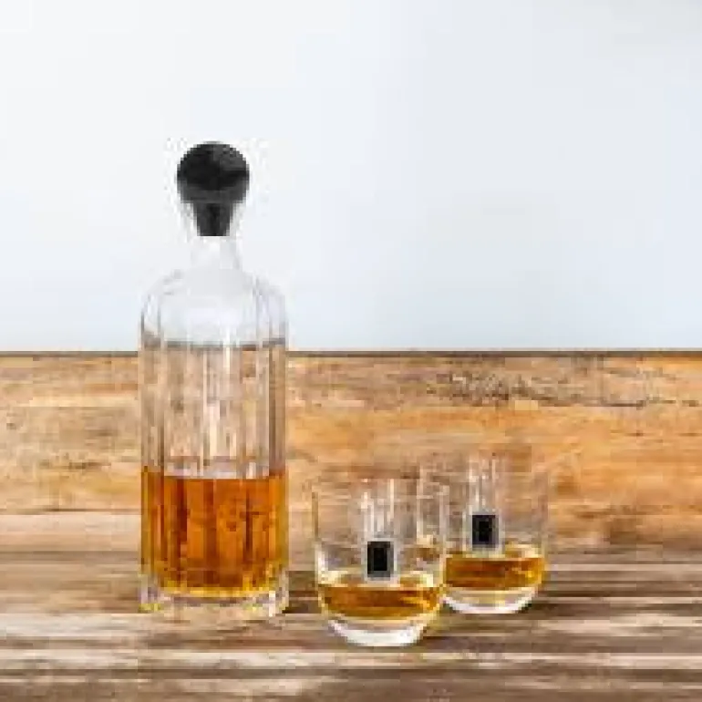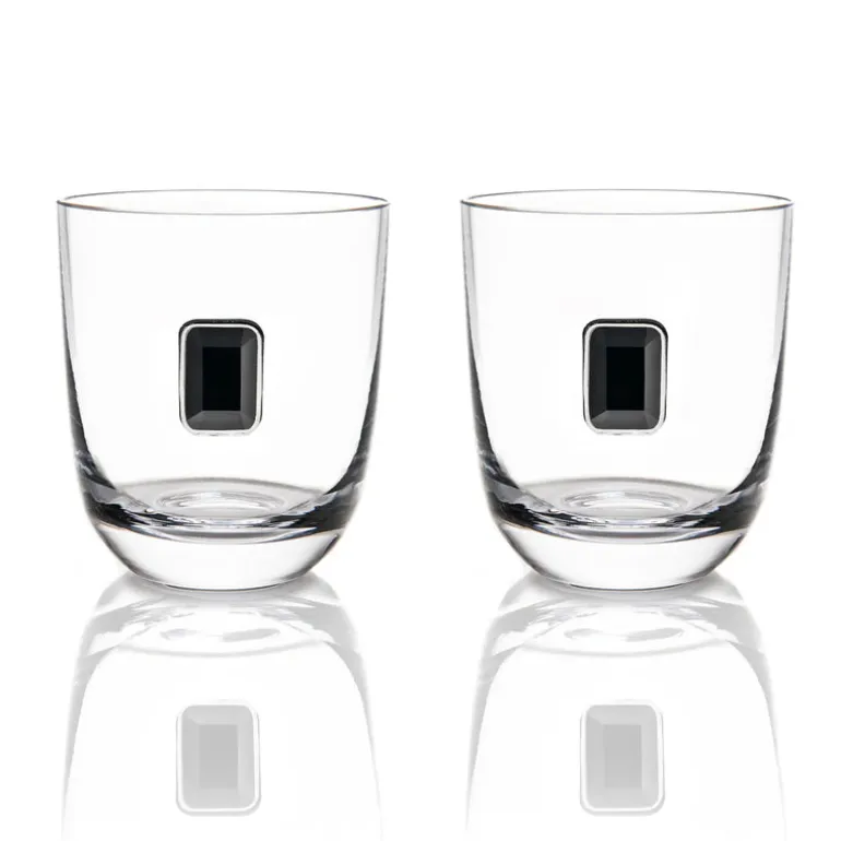The Elevo Double Old Fashioned Glasses are designed to elevate the experience of your favorite whiskey. Expertly crafted from lead-free European crystal, they are set with princess-cut Obsidian, hand-carved from naturally-occuring volcanic glass. These pieces are jewels for your bar that make everything you imbibe taste better.