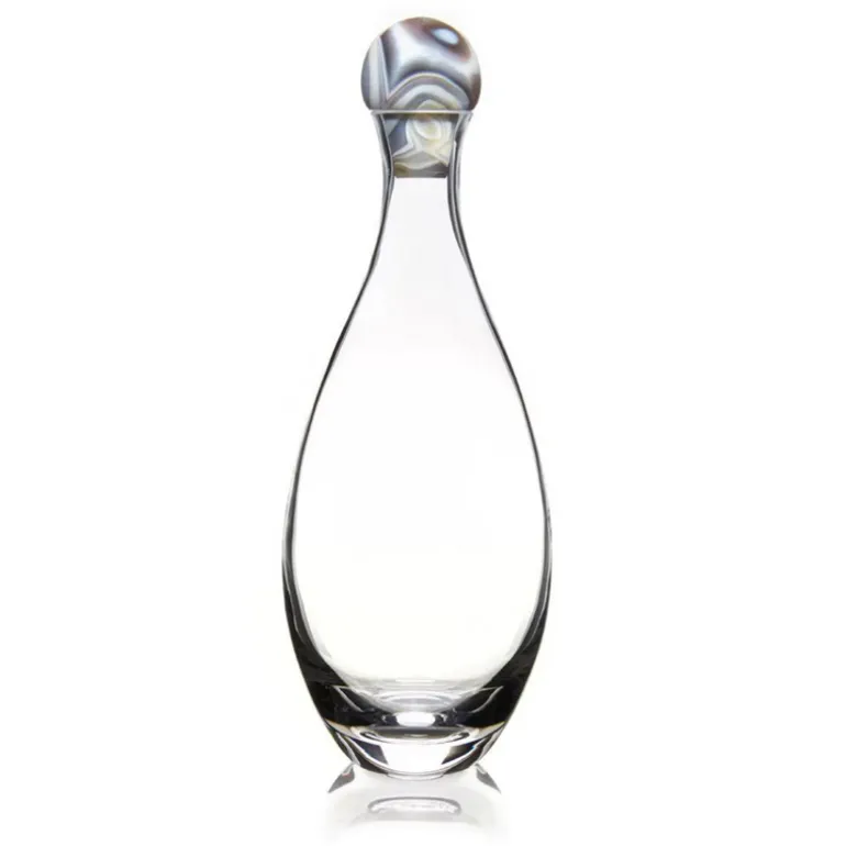 Our gemstone decanter is sculpted from Agate, thought to bring calmness and pleasant dreams to its owner. Our modern designs are believed to enhance your home for generations to come.