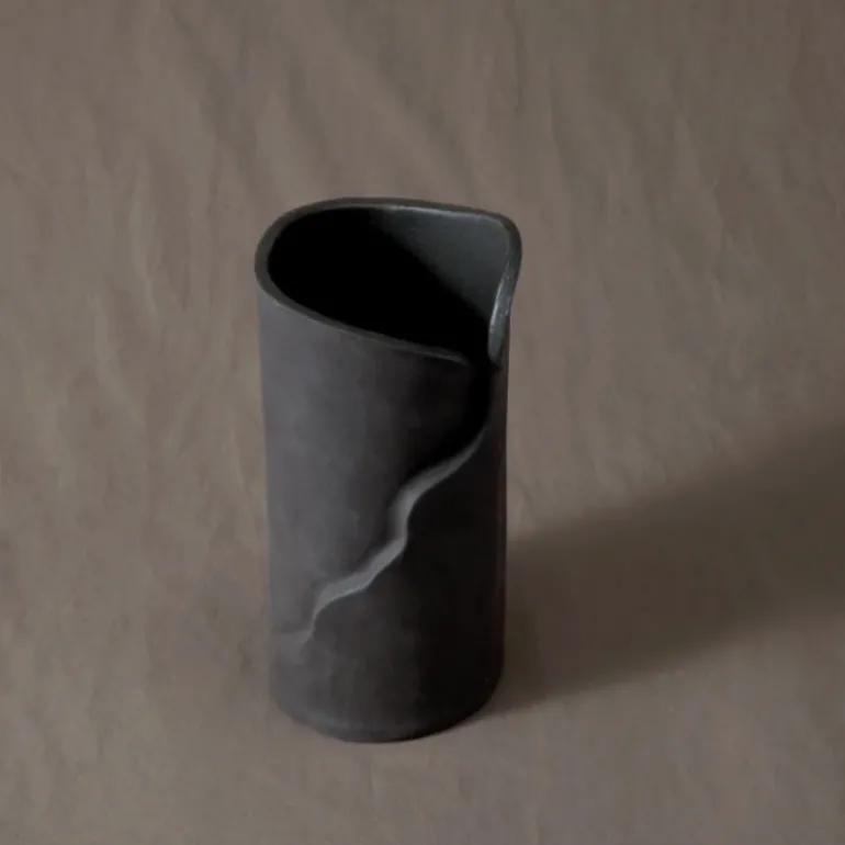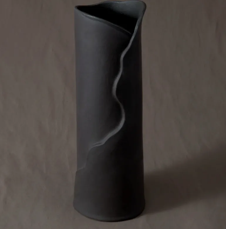 The Eliza Vase features a gorgeous unique take on a cylinder shaped vase. This vessel is functional and perfect for flowers or on a shelf as a layering piece. The vase is glazed ceramic, light variations will occur due to the handmade nature.