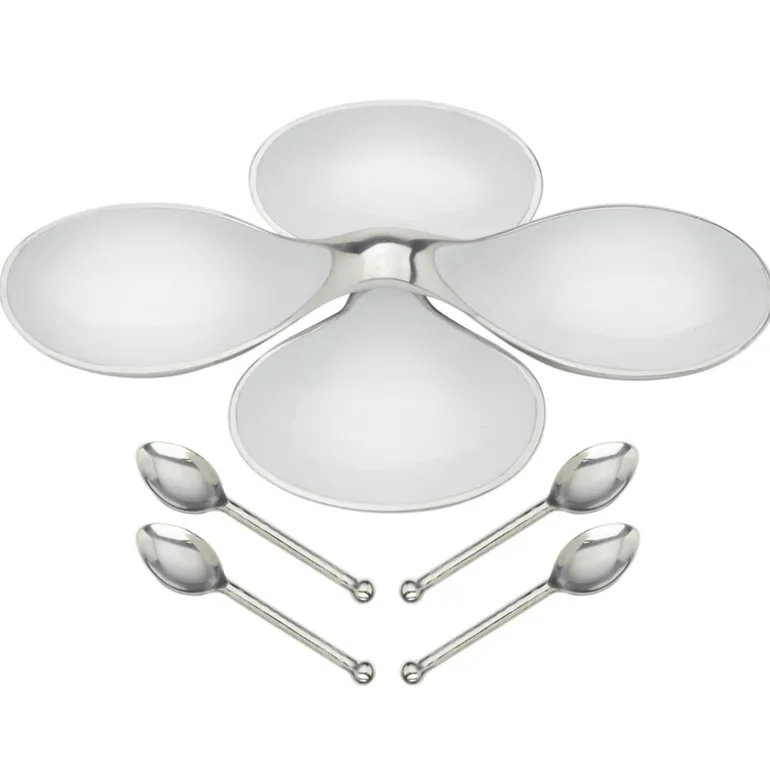 This Two-Pack Interlocking Bowl Set’s stackable, curved bowls can be used together or separately – simply lift the central handle. Plus, four included Simple Spoons make scooping and sharing easy.