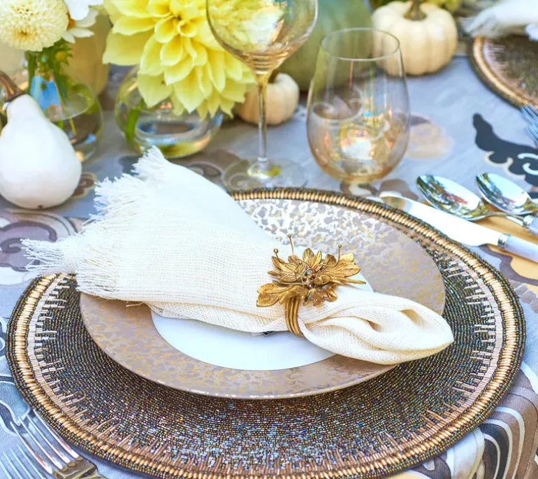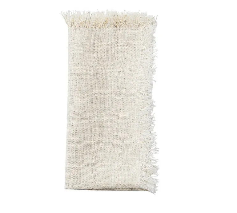 A glamorous take on farmhouse chic. Gold lurex thread is woven with linen giving the Fringe Napkin an elevated shimmer.