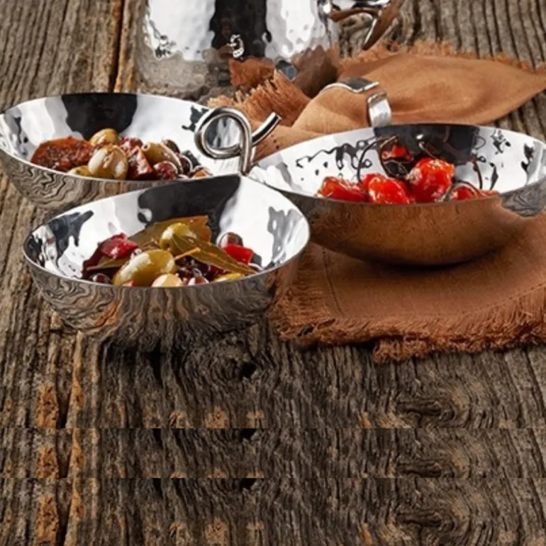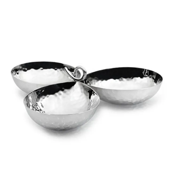 The galaxy 3-bowl server has a modern design. The stainless steel linked with a light-hearted loop detail is versatile and functional. Fill with finger food, dressings, crackers. You will find countless ways to love it!