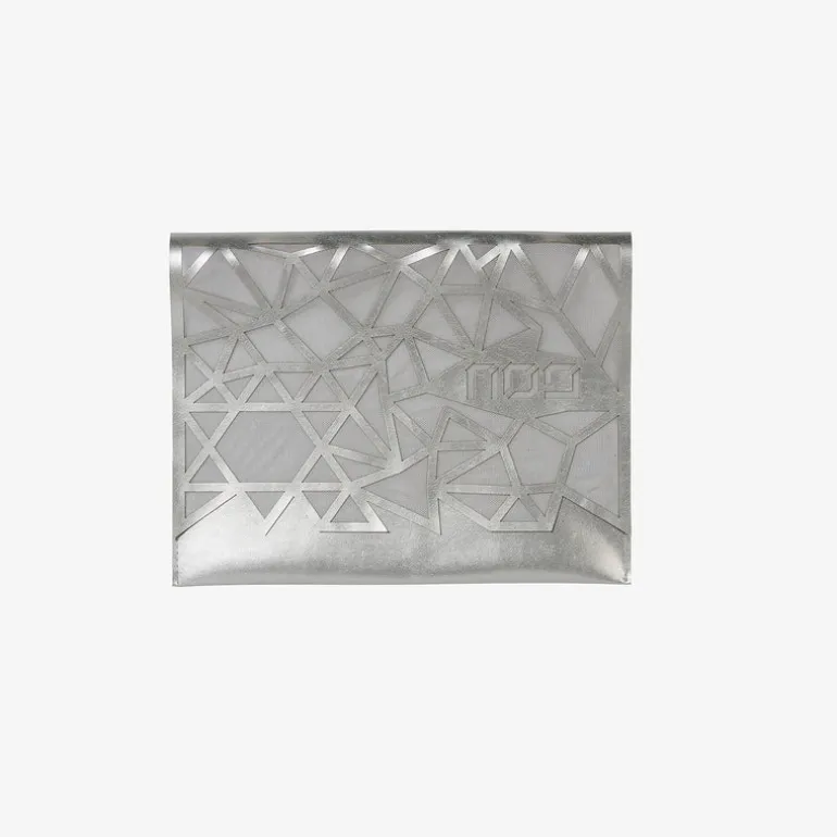For this contemporary bag, we’ve created a design that starts with our original Star of David pattern and morphs into scattered geometric lines; including the hebrew word “Pesach”.