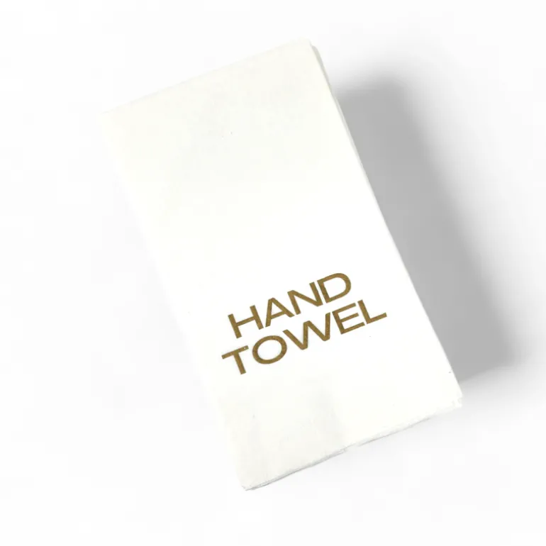 Efficient and elegant, the Guest Towel Pack in gold is the perfect addition to any bathroom. Featuring a hand towel with luxurious gold lettering, it adds a touch of sophistication to any space. Say goodbye to boring hand towels and elevate your home decor with this stylish set.