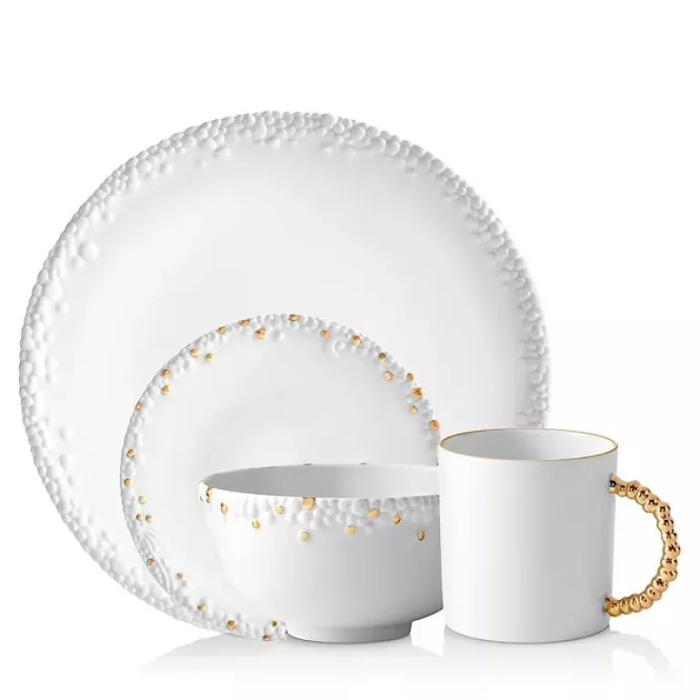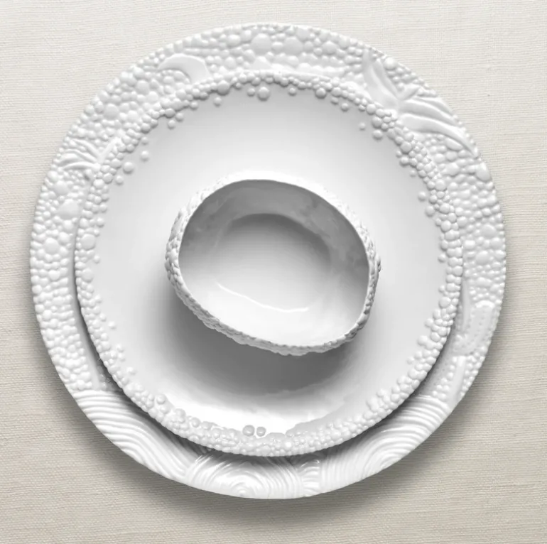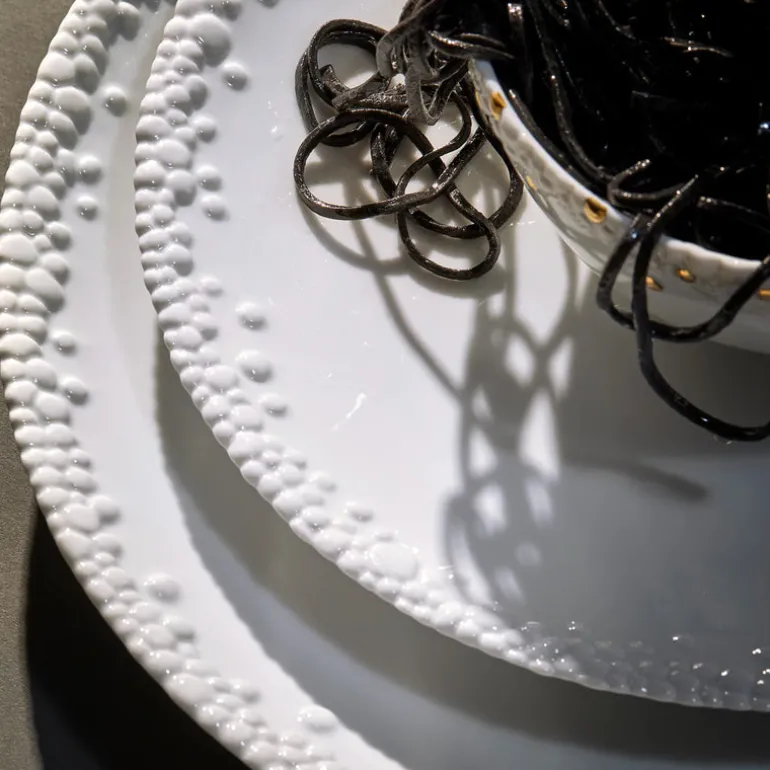 The Mojave Dinnerware from the L’Objet Haas Brothers collaboration features an intricate and organic pattern reminiscent of desert pebbles and of the endless stars in the desert sky. Great for daily use, easy to elevate by mixing in the gold and white collection.