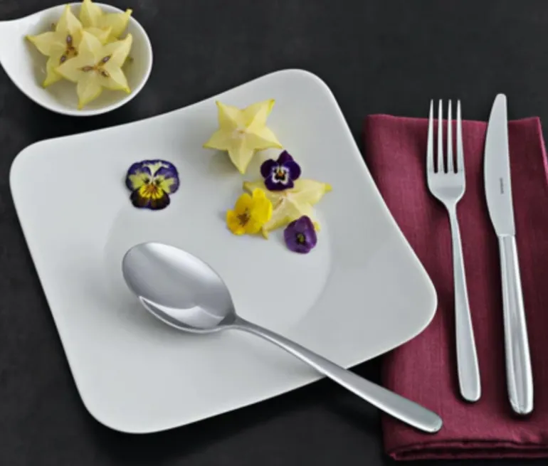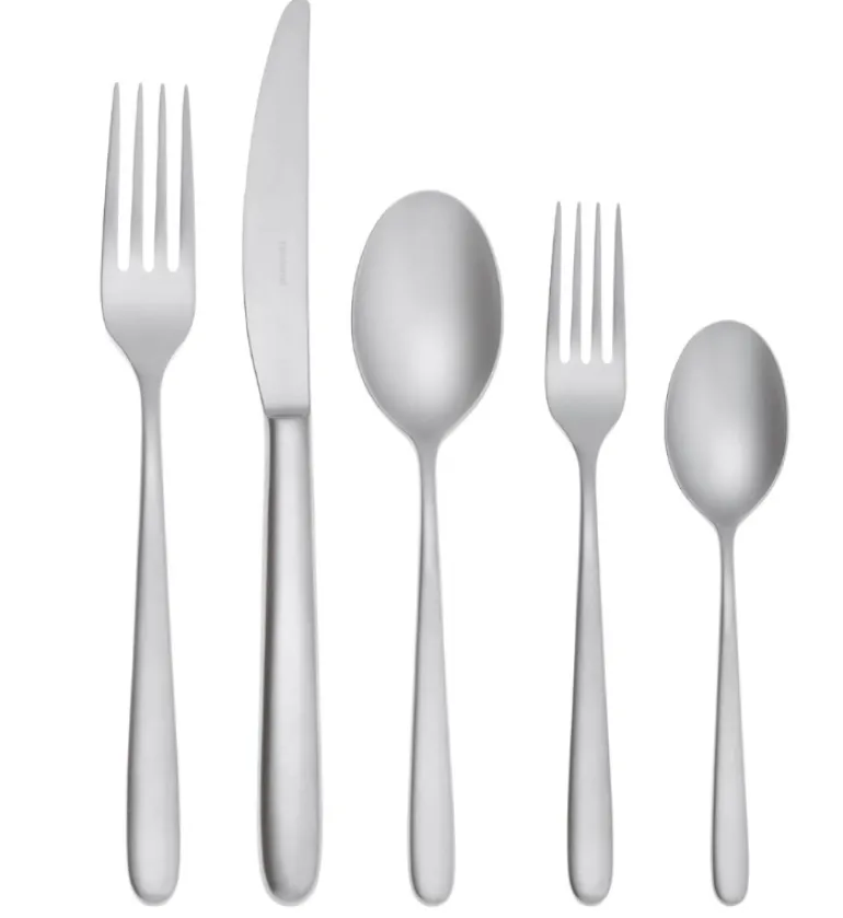 - Includes 5 pieces dinner fork, dinner knife, salad fork, tablespoon, teaspoon.