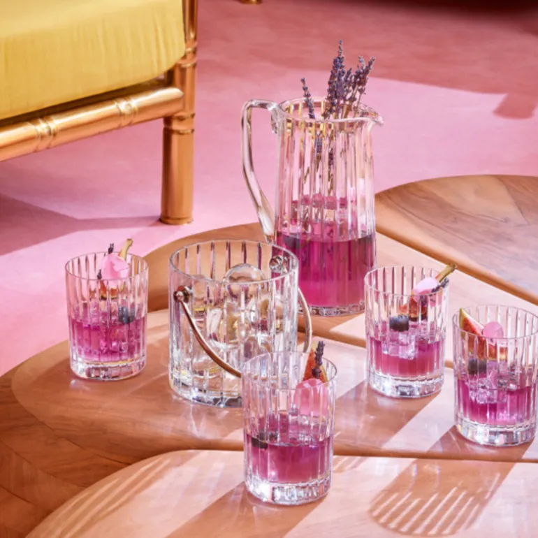 The vertical sweep of the striping is present throughout the Harmonie collection, which includes highballs and tumblers and other pieces to complete a well-stocked bar. The Harmonie pitcher is a stunning item that makes having a drink all the more enjoyable.