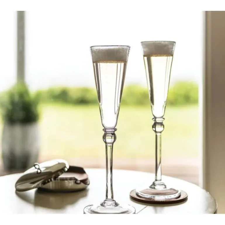 Handmade by a duo of master glassblowers working in tandem, each iconic globe-and-stem design is a testament to the power of teamwork and tradition. A sweet wedding gift, a duo of Hartland Flutes may well inspire raising many a toast for years to come.