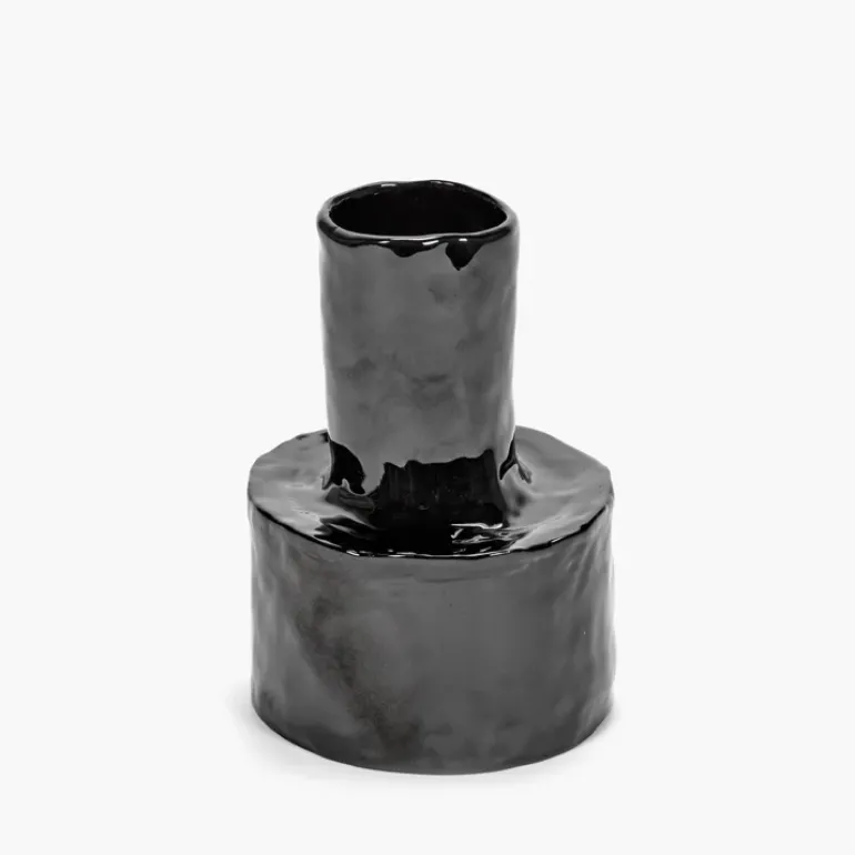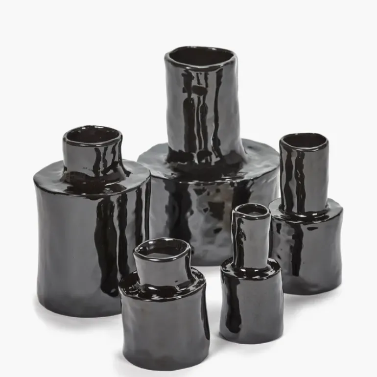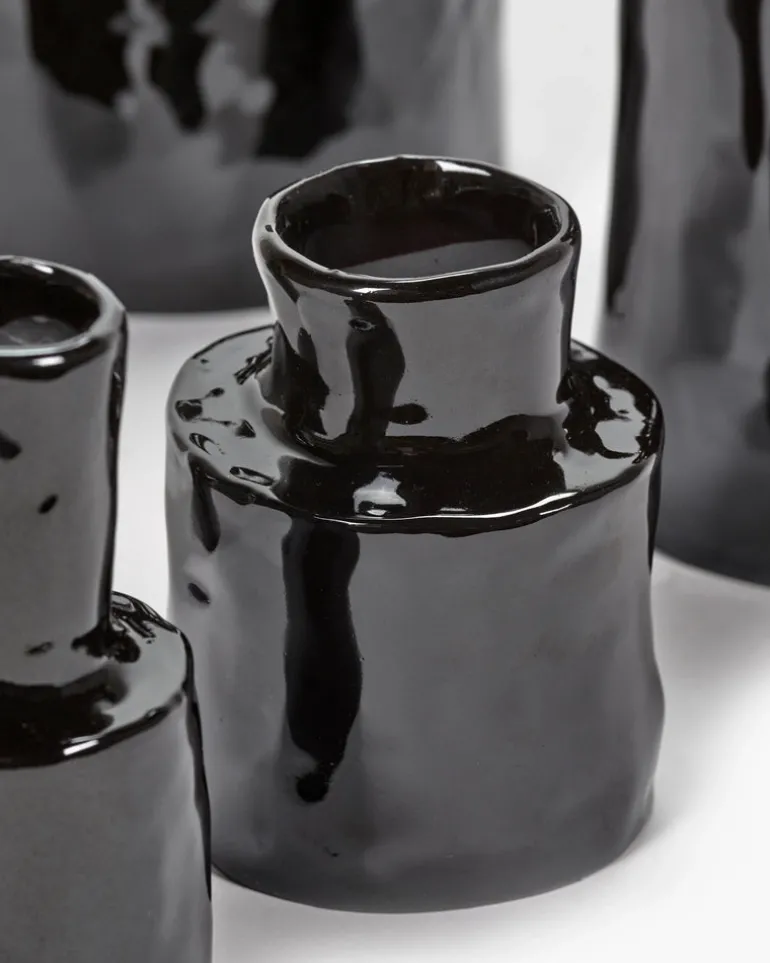 These glossy black Héléna Marie vases maintain their natural allure both with and without the adornment of flowers. Perfect singly, even better in a group.