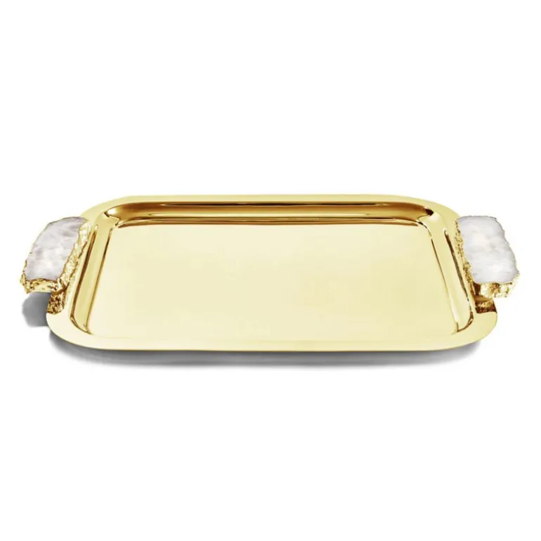 Our Gemstone Hospitality Tray helps you to host in style, with minimal effort. This crystal gemstone tray merges luxury and practicality, just what we stand for as a brand. Crafted from 24K gold-plated natural crystal and plated stainless steel, this is an heirloom piece designed to last a lifetime, and beyond.