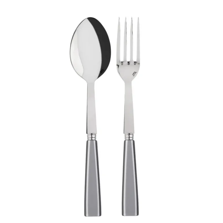 A Current Home Favorite, the Natura Flatware & Serveware Collection, with its sleek combination of acrylic and stainless steel, brings a modern aesthetic to the table. Composed of a large fork to serve meats and a large spoon for the accompaniments, this Natura serving cutlery will be used daily.