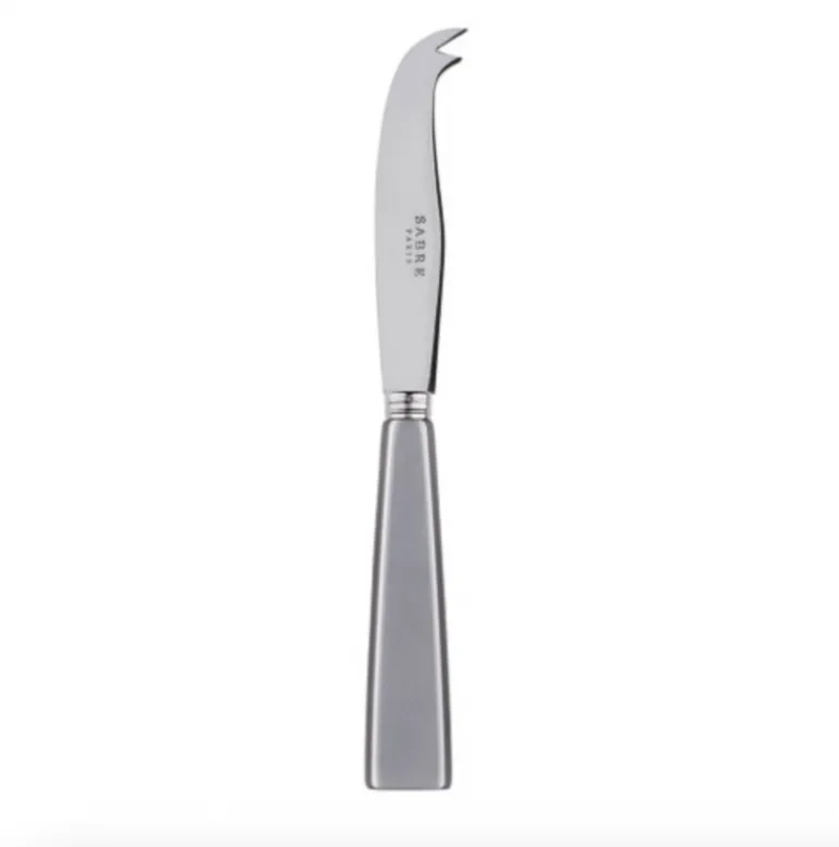 A Current Home Favorite, the Icone Flatware & Serveware Collection, with its sleek combination of acrylic and stainless steel, brings a modern aesthetic to the table. The large Sabre cheese knife allows you to serve all types of cheese.