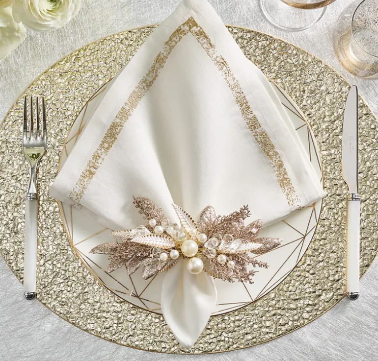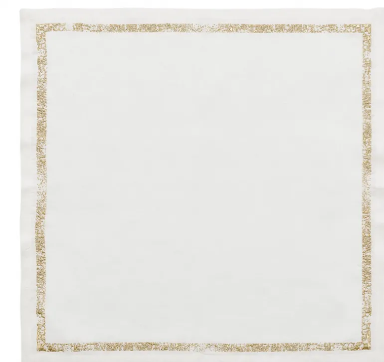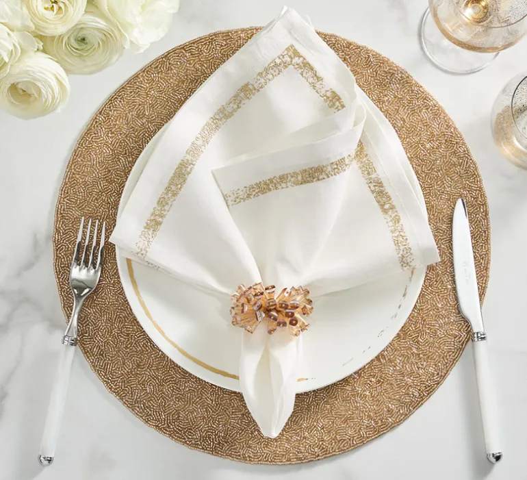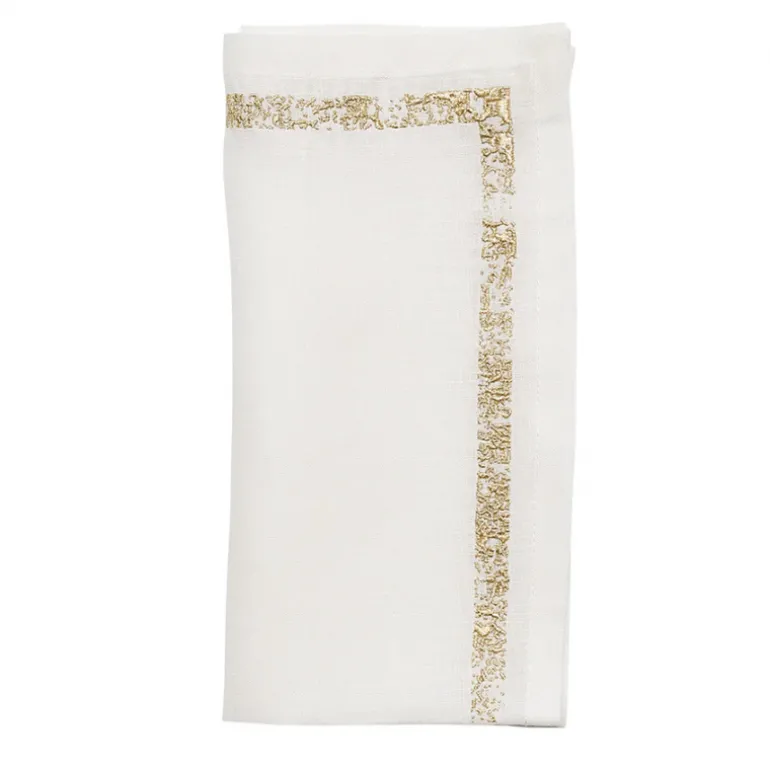 A modernist take on the classic white napkin, the Impression Napkin features an embroidered border reminiscent of brushstrokes. A speckled pattern throughout the gold metallic stitching lends a uniquely artisanal feel to this linen napkin. Whether it’s for special celebrations or you just want to elevate everyday dining experience, this napkin is a great addition to the table.