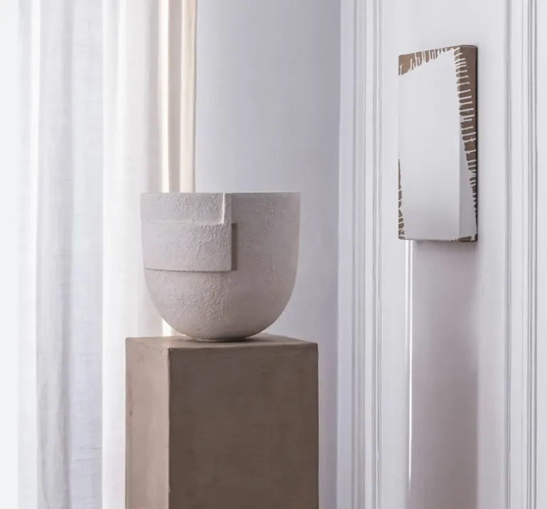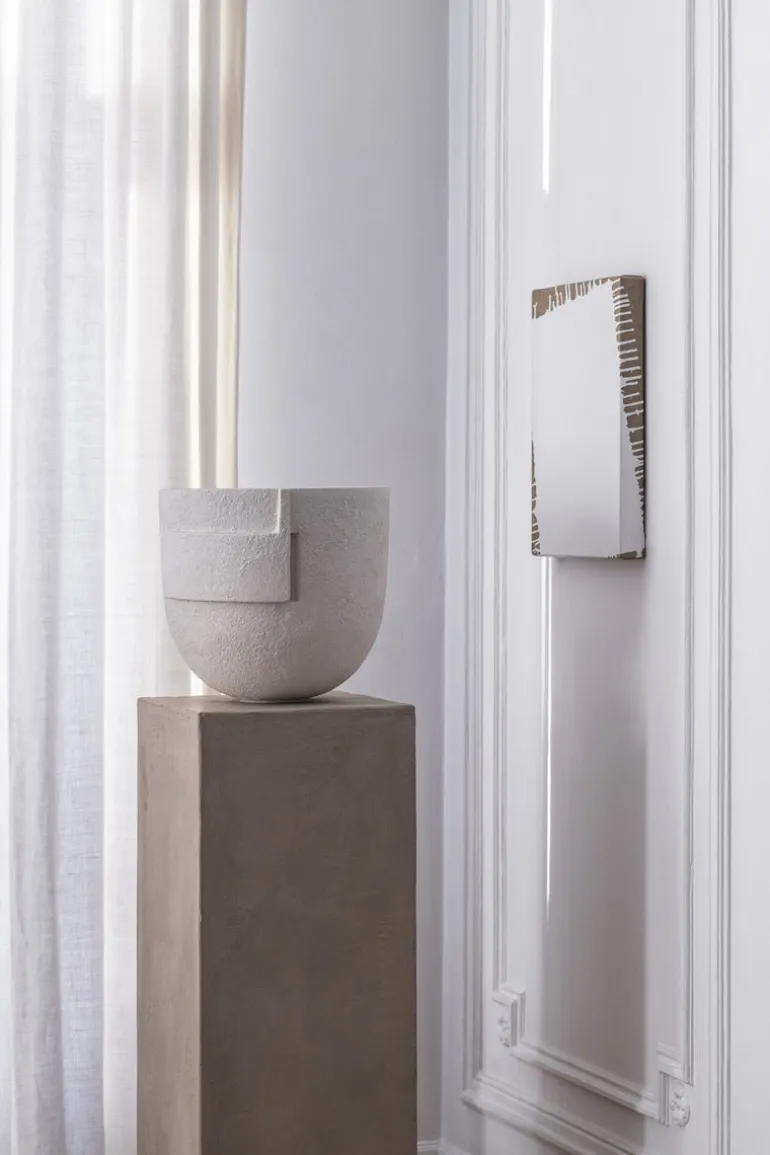 This clean-cut, contemporary design object is made from ceramic and is handmade in an artisanal ceramic studio in Portugal.