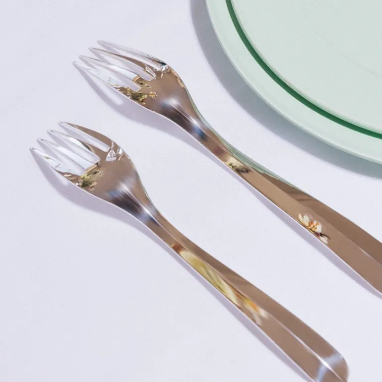 The Christofle silversmith’s house revisits table rituals with its new collection essential cutlery called Infini Christofle. The infinite ridge characterizes the design of this new collection. This high-quality flatware set is made in Germany and is dishwasher safe for easy maintenance. Enjoy this durable and long-lasting set for many meals to come.