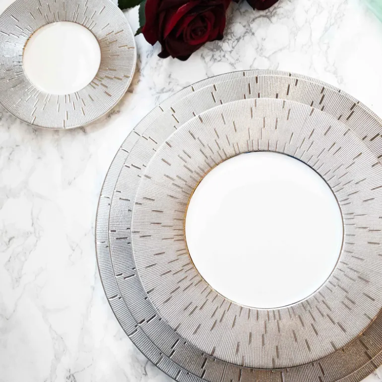 An iconic collection and one of the best-sellers of the Maison Haviland, the Infini collection reveals a modern and timeless engraving of Limoges porcelain. With its counter-relief engraving, this pattern is represents elegance and modernity. True craftsmen paint the plates in platinum by hand.
