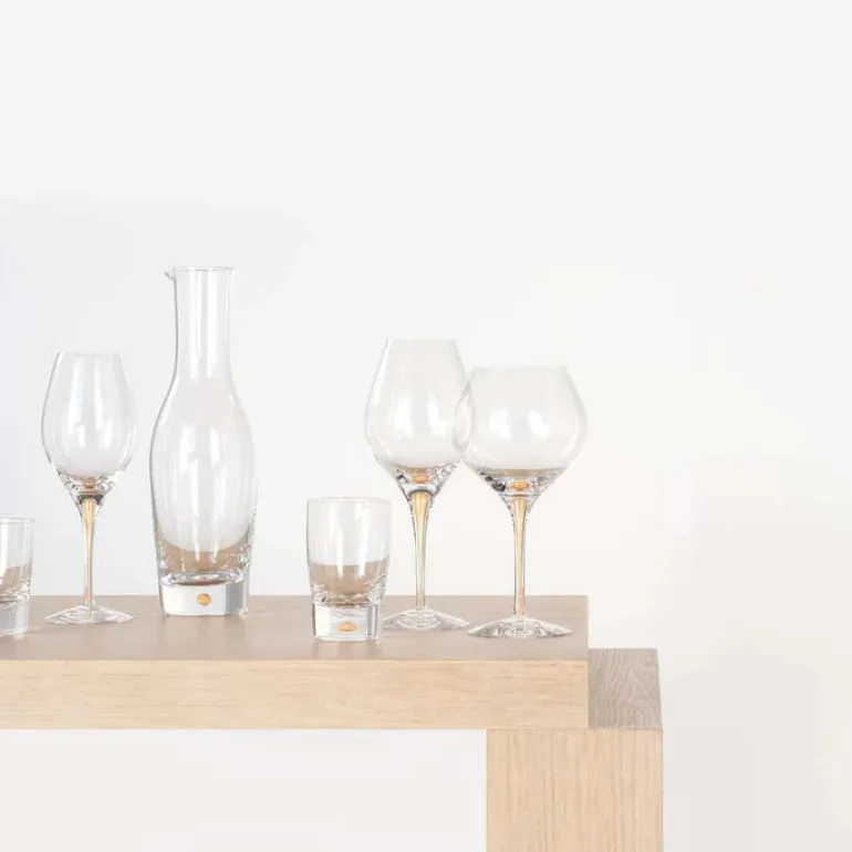 Our craftsmen and Erika Lagerbielke have long tried to fill Intermezzo’s characteristic bubble with gold pigment. Finally it is there, encased in the crystal clear glass – a matte drop shimmering like gold. Intermezzo Champagne holds 26 cl and is perfect for sparkling wines. The glass is mouth-blown in Sweden. Design by Erika Lagerbielke.