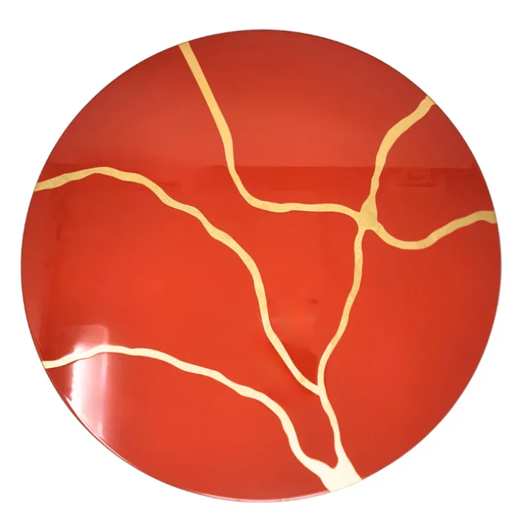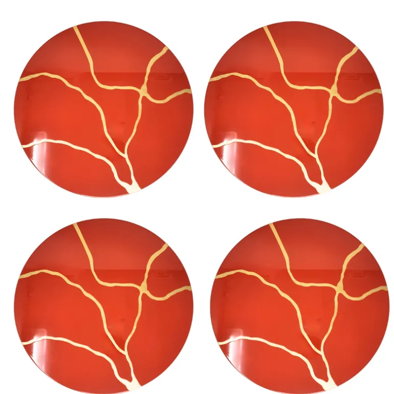 The Lacquer Crack Placemat in a rich colorway for fall is made of lacquer and gold accent crack, features a stylishly lacquered surface that will add a touch of modernity to any table. The persimmon color adds an elegant flair, perfect for any dining room.