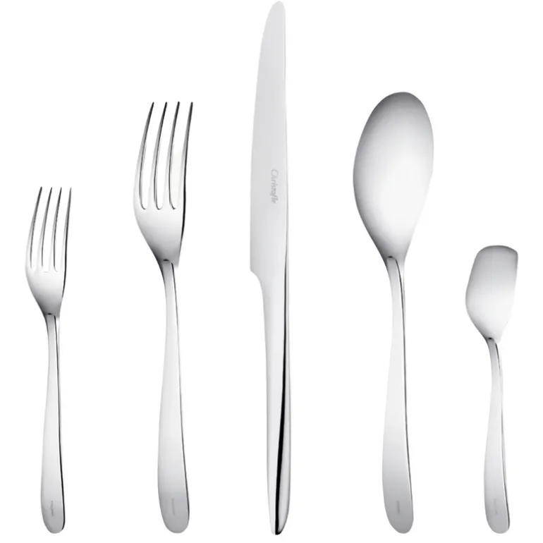 The stainless steel 5-piece place setting is a perfect addition to any dinner table. The pure lines of the flatware and adds an dash of modernity to the finest tables.